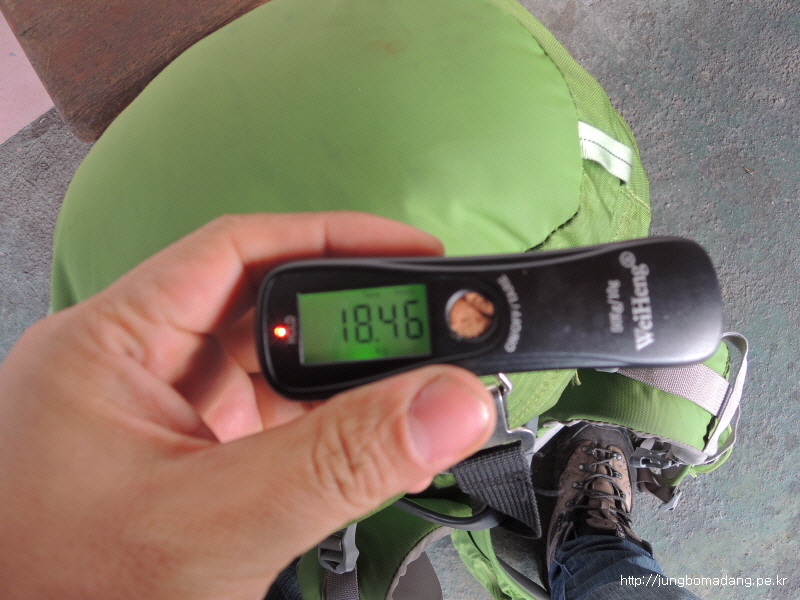 07:05 음... 또다시 어둠이. 해뜨길 30분 정도 기다려야합니다. 다행히 국립공원이라 화장실이 있어 그 안에서 잠시 대기하기로 합니다. 심지어 전기히터도 있네요! 배낭 무게는 무려 11.26kg ㅋㅋㅋ