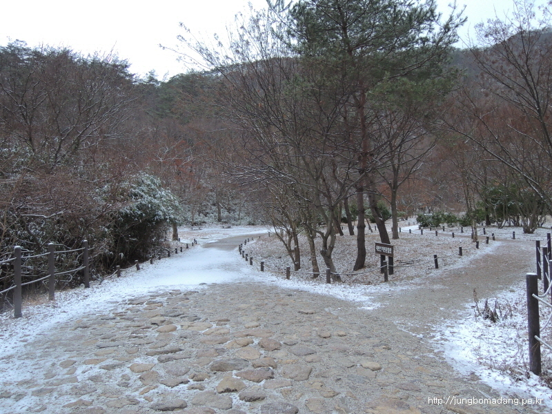 아무도 없네요. 눈 쌓인 이 길은 저 혼자 거닐게 되네요.