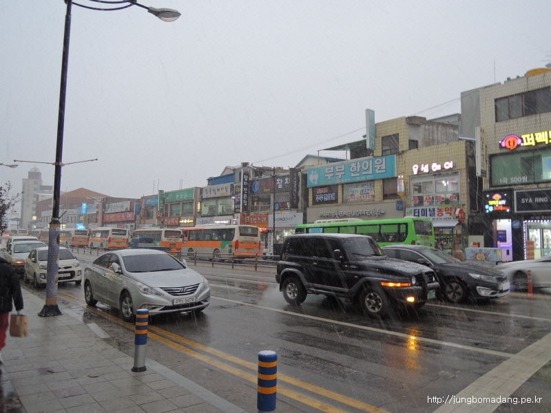 15:03 전주역에 도착하여 탈출 성공! 걸어서 4km 거리에 있는 버스터미널로 무브~ 무브~ 거기서 무안가는 버스만 이용하면 오늘 미션은 끄읏~ ㅎㅎㅎ 근데... 근데 눈이 몇톨 내리기 시작...