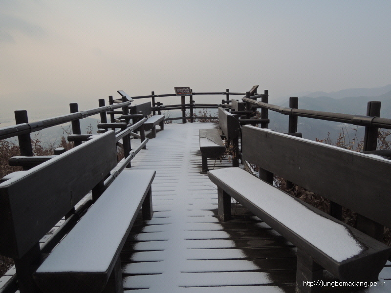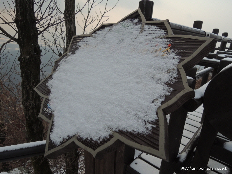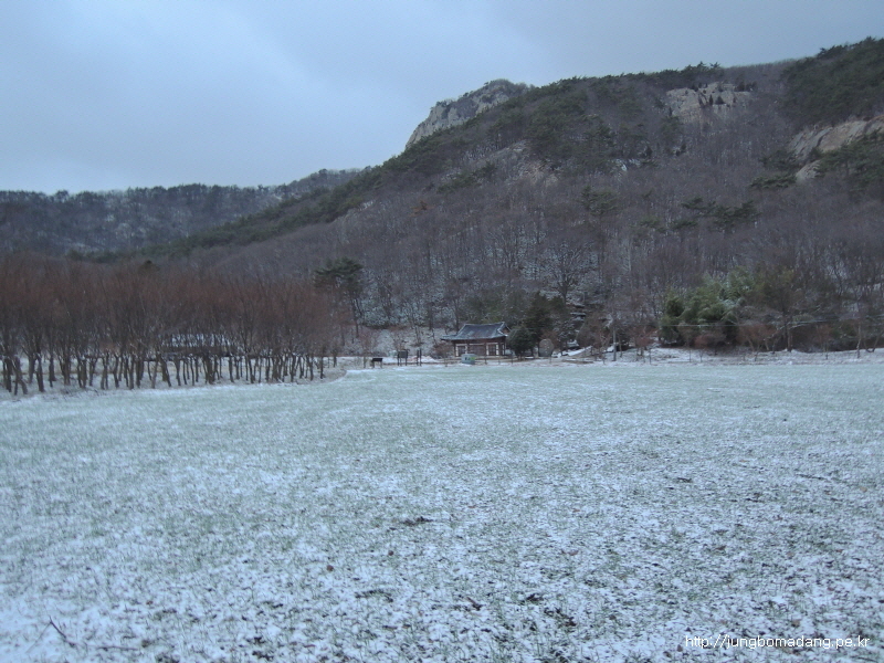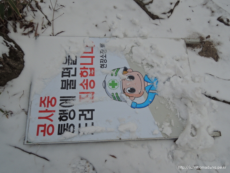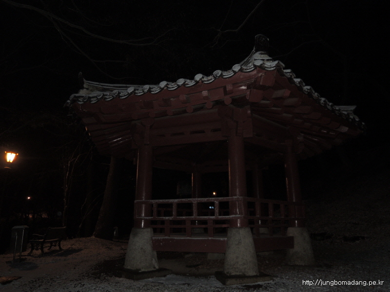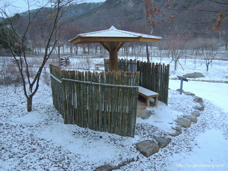 이렇게 훌륭한 정자를 예상보다 빠른 시간에 발견했네요. 눈이 약간 쌓였지만, 괜찮아요. 글구 여긴 바람이 없네요. 집을 짓고 짐을 안에 던져 놓고,