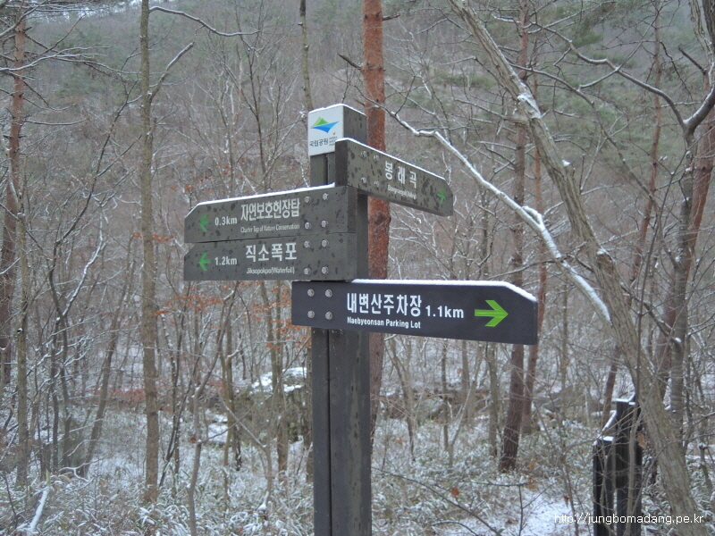 09:19 재백이고개. 내소사까지 2.1km 남았습니다. 여기서 중대한 결정을 합니다. 내일 수덕사,개심사 일정을 미루고, 오늘 하산후 바로 서울로 올라가기로 한거죠. 어차피 꼭 가보고 싶은 곳은 다 들렸으니 미련은 없네요. 오늘밤은 따뜻한 집에서 잘 수 있겠네요. 갑자기 힘이 납니다. ^^
