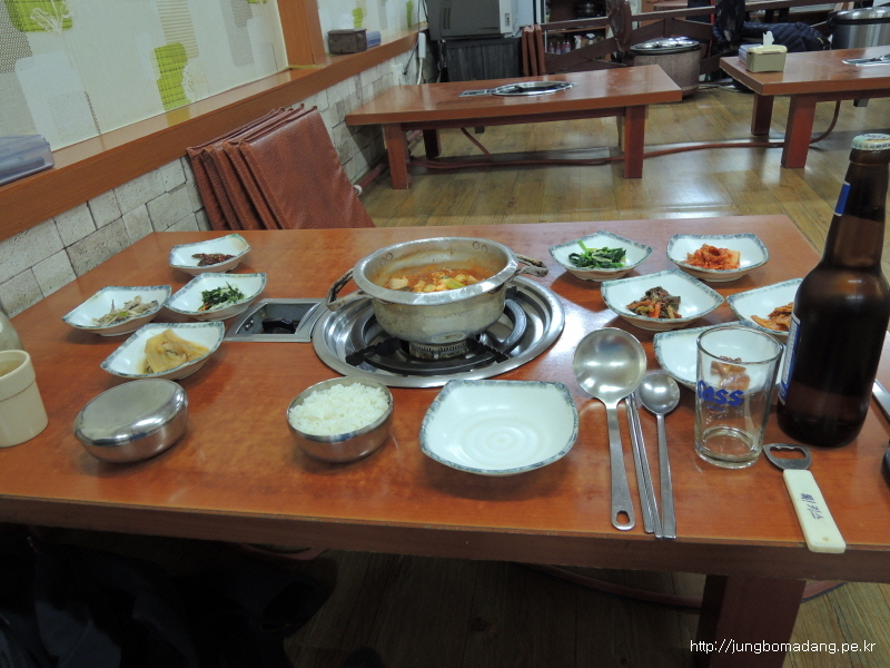 17:12 하나로마트는 파악 했고~ 그 근처 식당에 들어갑니다. 가볍게 김치찌게를 주문하고 앉습니다. 맥 맥주가 3000원?? 막걸리가 없는 건 좀 아쉽네요.