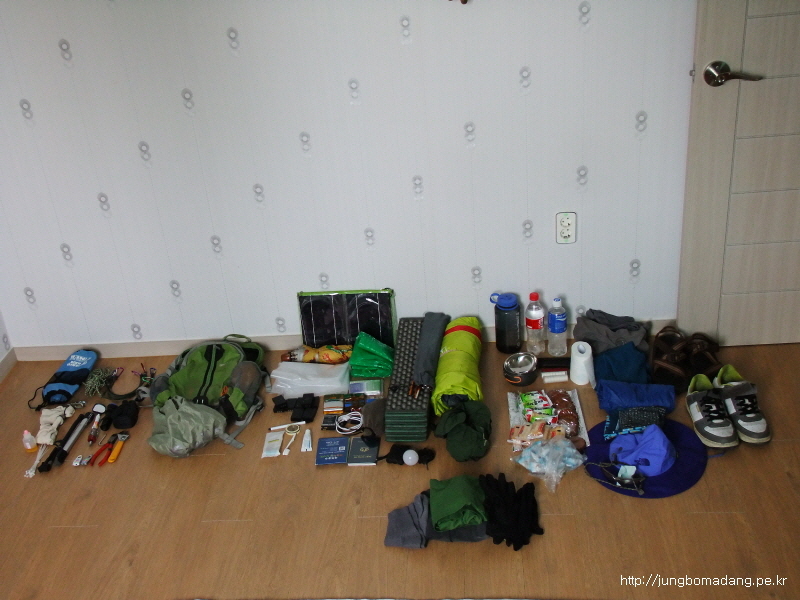쭉~ 나열해봅니다. 우측에서 좌측방면으로 의-식-주-기타-배낭-자전거용품(공구) 되겠습니다.