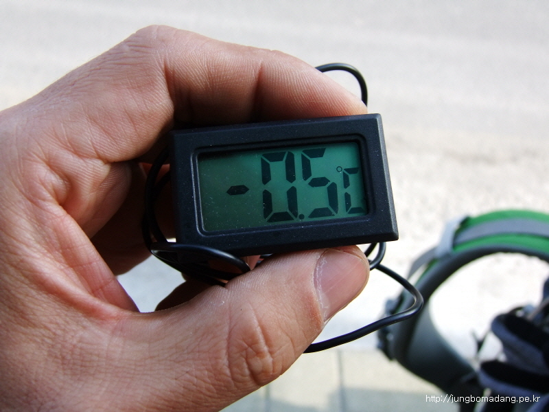 06:46 출발 준비를 마칩니다. 동네 주민들이 놀라워하네요... 최저 영하 9도 ㅠㅠ