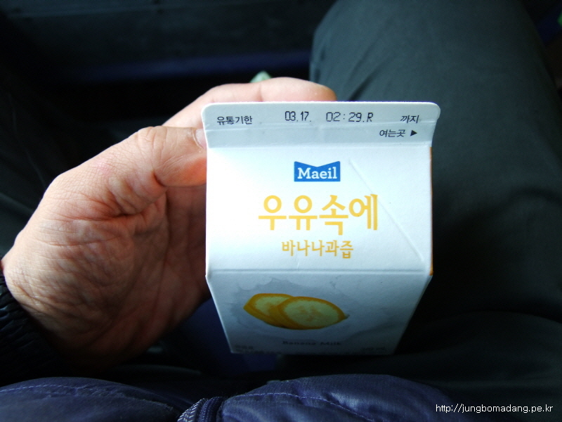 08:50 160번 버스를 타고 단양으로 향하는 길. 아침으로 우유와 빵 두개를 먹습니다
