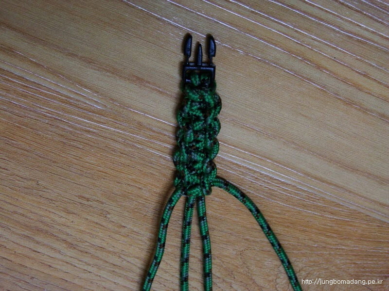 팔목길이대로 조정해준 상태로 나중에 끼운 부분에서 매듭을 시작합니다.