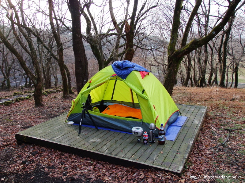16:30 근데 이상하게 데크에 텐트치지 말라고 붙여놔서 이상하다? 했는 데, 뭐 어쩔수 없이 그 위쪽에 맨땅에 텐트를 치는 곳으로 되어 있어 그냥 텐트를 쳤습니다. 또한, 압축티슈 몇개를 꺼내서 후라이며, 방수포에 전날 묻은 물기를 깨끗하게 닦고 쾌적한 상태를 유지합니다. 오늘은 비소식이 없는 데, 내일 오후부터 비소식이 있는 데, 살짝 걱정이네요!