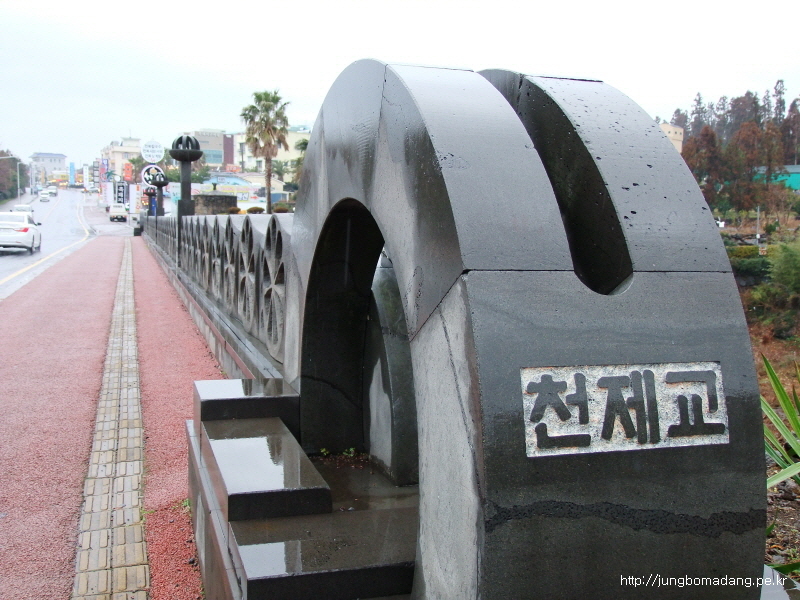 건너편에 천제연폭포 안에 있는 오작교도 보이네요...