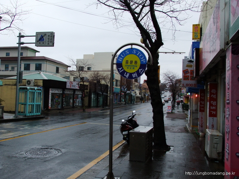 12:25 요긴 제주 방향 정류장입니다. ㅎㅎㅎ 비가 오는 관계로 길건너에서 타야 하는 데 여기서 기다립니다.