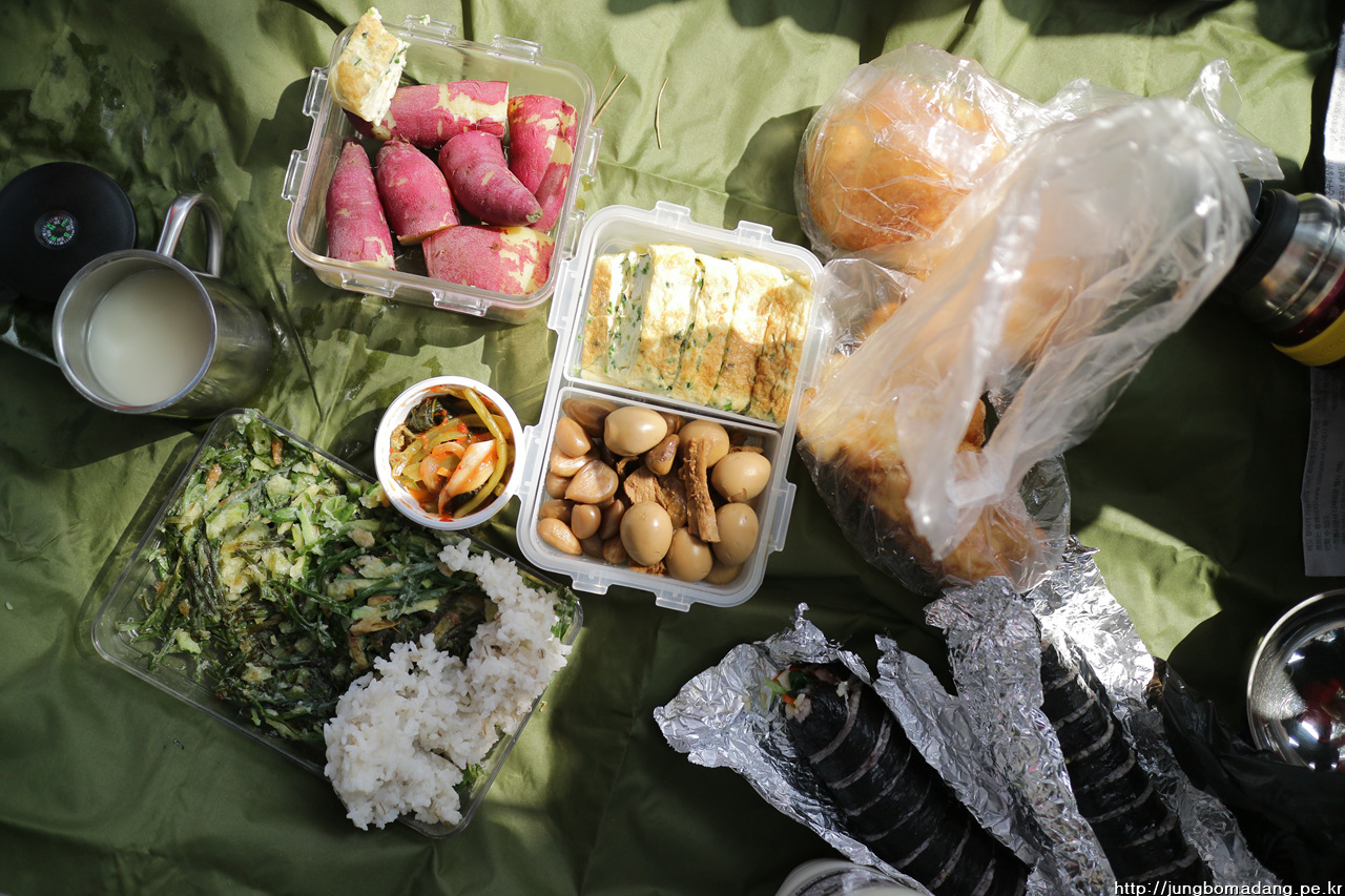 멋진 단풍도 구경하지만, 시간이 되었으니 점심 식사를 가져 봅니다. 누가 우유를 싸왔네요?