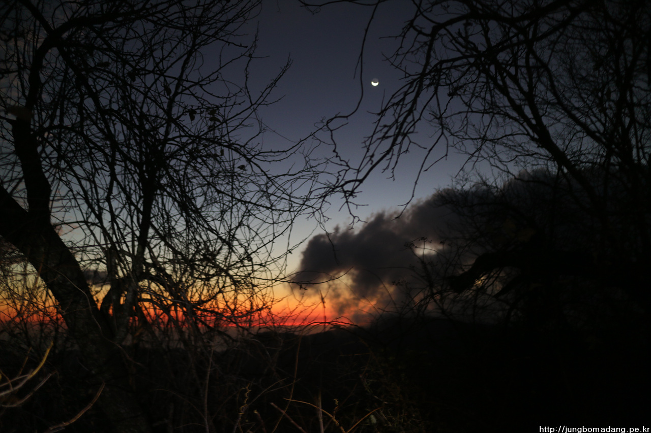 일출이 일출이... 그 위로 부분개기월식인지 달 모양이 좀 요상하게(초생달 + 보름달?) 떠 있네요.
