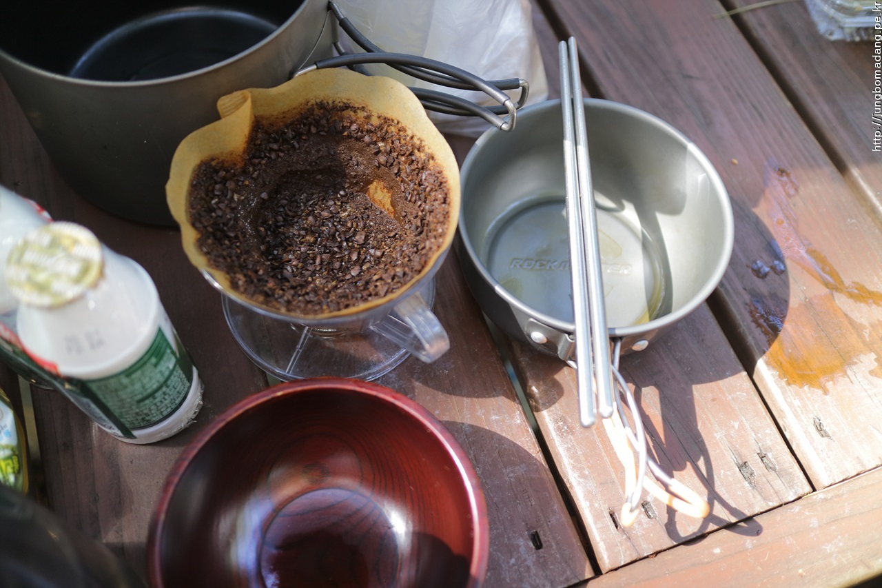 네명이 모이고 간단히 커피도 내려서 먹습니다. 커피는 제가 직접 생두 볶아서 갈아서 챙겨온...