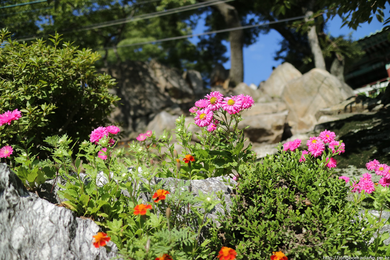이쁜 꽃밭에는 봉선화와 맨드라미가 자리잡고 있구요.