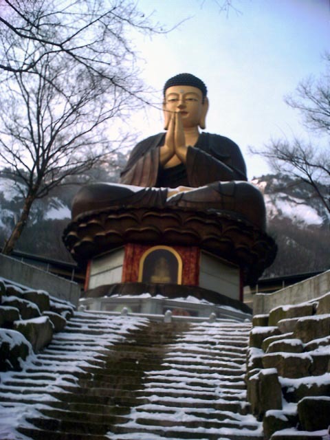 4. 09:09 [국녕사] 중성문에서 18분 소요. 전방에 보이는 거대한 부처님 좌상 앞에서 오른쪽으로 몇미터만 진행하면 좌상을 좌측으로 낀 등산로 간판이 보임.