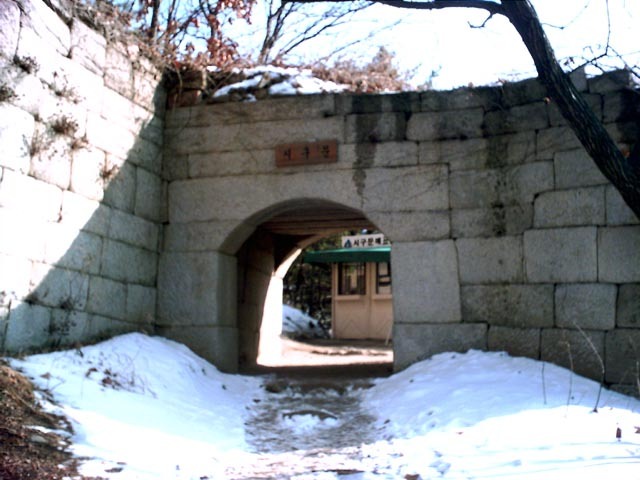 23. 14:50 [서암문(시구문) 매표소 - 제13문] 드디어 마지막 관문인 시구문에 도착! 북문에서 40분 소요되었습니다. 건너편에 시구문매표소가 눈에 보입니다. 계곡길로 빠지려면 매표소 바로앞쪽에서 오른쪽, 그러니까 북문에서 내려오면서 바로 직진하면 됩니다. 성벽을 우측으로 끼고 가다보면 막다른 길이 보이는 데, 이때 좌측으로 이동하면 성벽에서 약간 뚤린 길로 계곡으로 내려올수 있습니다.