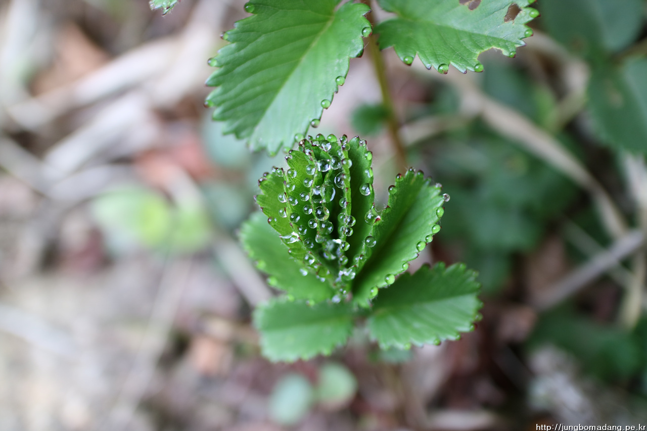 산오이풀 잎에 촉촉한 물방울이 송글 송글