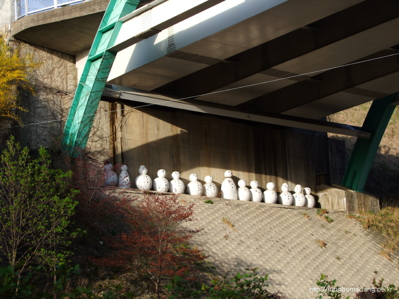 왜 설치된 진 모를 다리 아래 노숙 눈사람들...