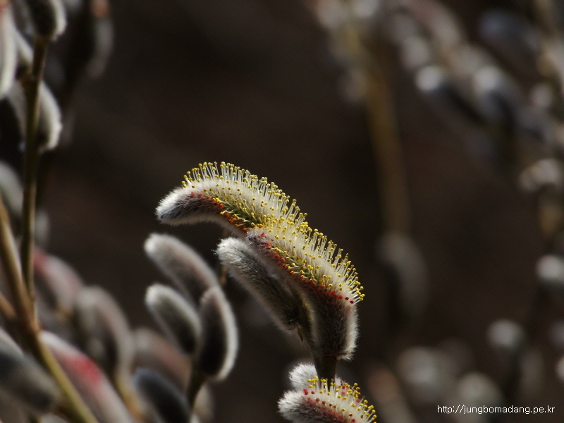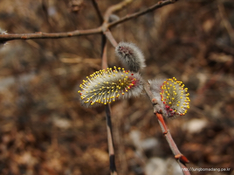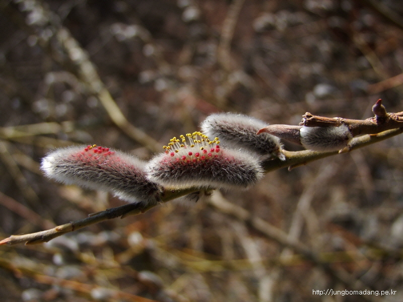 갯버들 - 갯버들이 꽃을 피우기 시작했네요. 빨간 꽃이 참 이뻐요.