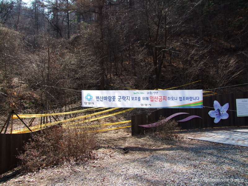 예상은 했지만, 변산바람꽃 군락지는 많은 이들의 방문으로 몸살을 앓고 있어 출입을 통제하고 있네요.