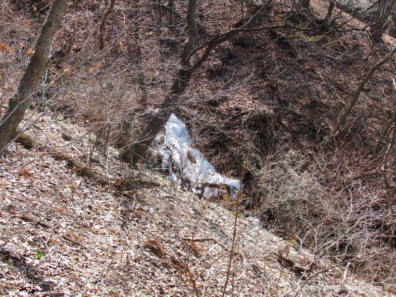 헉! 계곡에 아직 얼음이...