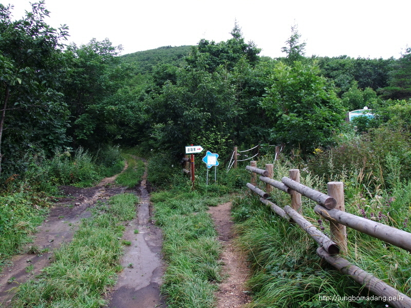 09:03 뭔 이정표가 이리도 많노? 자~ 직진하면 그냥 도로따라 1.8Km, 우측 등산로를 따라가면 1.2Km 오올~ 당연히 짧은곳으로 가야지? 하지만, 아셔야할것은 길이 상대적으로 짧다는 건 경사가 그만큼 가파르고 힘들다는 사실! 어쨌던 이몸은 야생화를 봐야하니 우측길을 선택한다~