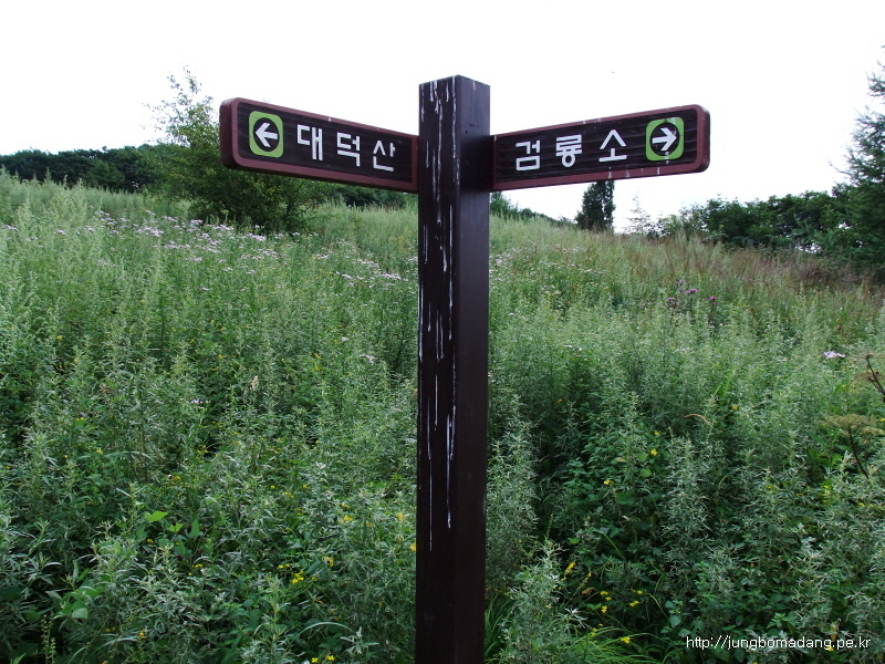 13:46 분주령 이정표. 여기서 잠시 고민에 빠진다. 몸이 피곤해서 바로 검룡소 내려갈까? 하다가 언제 또 와보겠냐! 그러고 잠시 고민을 접고 대덕산을 들려보기로 한다.