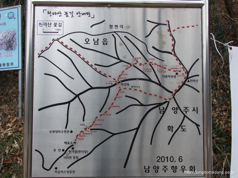 아실수도 있지만, 상봉역에서 경춘선 전철 타고 평내호평역에서 하차하여 165번이나 8번 마을버스 타고 수진사.천마산등산로입구까지 와서 하차하여 산행해도 되고, 평내호평역에서 걸어서 30분정도의 옵션을 선택 가능합니다.