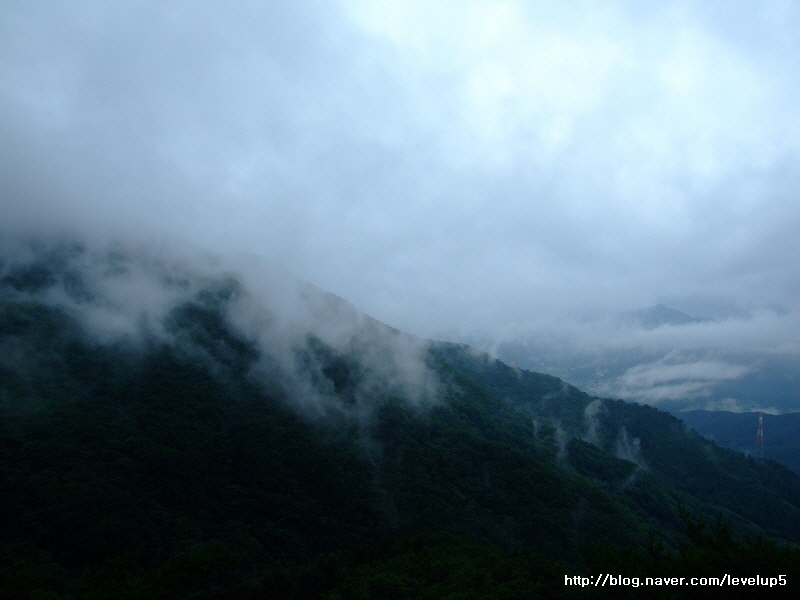 비가 계속 올 것 같아서 정상까지는 진행하지 않는 대신 중간에 전망대 표시가 있길래 그 곳에서 몇 장 담아본다.