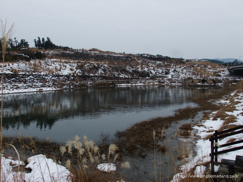 09:04 신남못에 도착합니다. 이곳은 오름 투어시 베이스캠프로 이용할 정자가 있는 곳입니다.