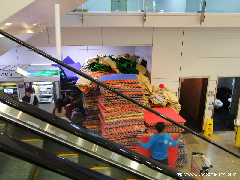 21:33 수하물 찾고 나와서 다시 수속하는 곳으로 향하는 길(응?)... 그간 제주공항에서 노숙했던 흔적을 발견합니다... 그나저나 왜 다시 올라가냐면 결항된 항공편 환불 받으러...