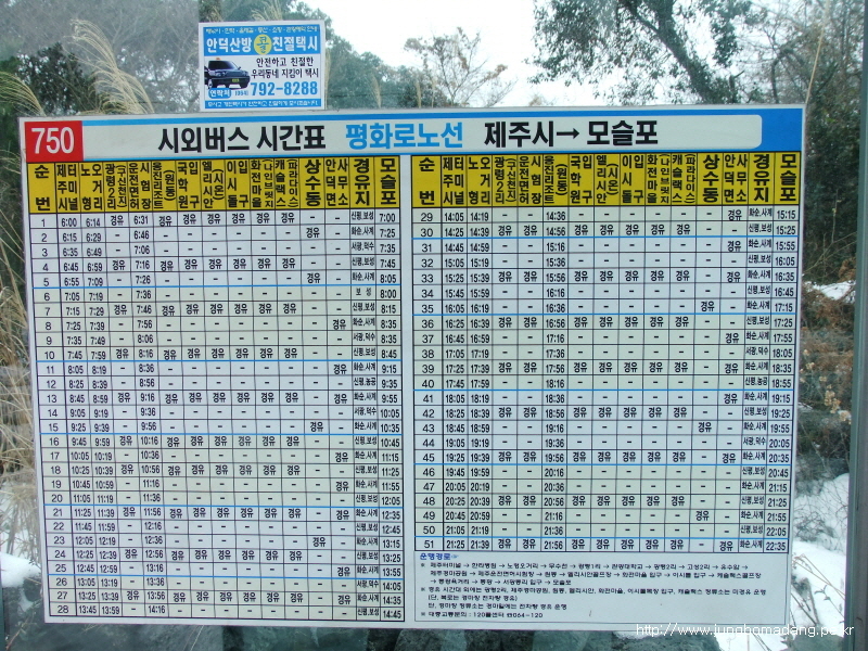 중문우체국~제주 781 버스 : 2800원
