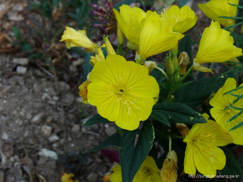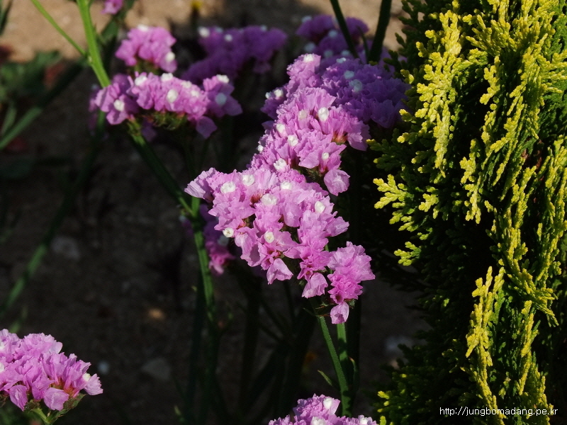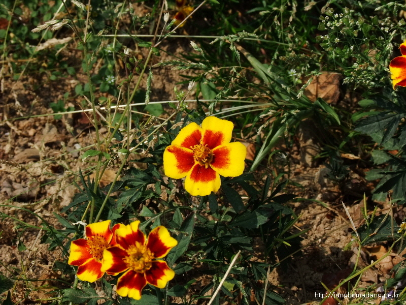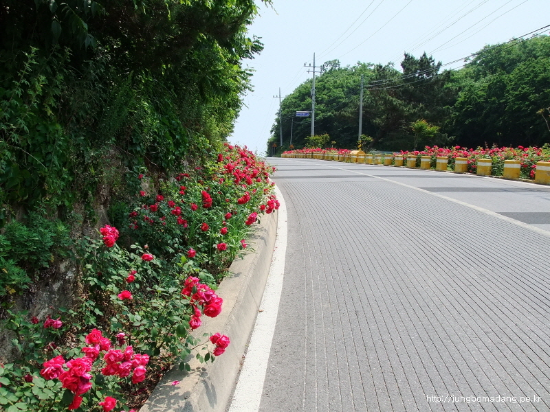 숙박업소에서 심어놓은 꽃들로 길이 화려하다...