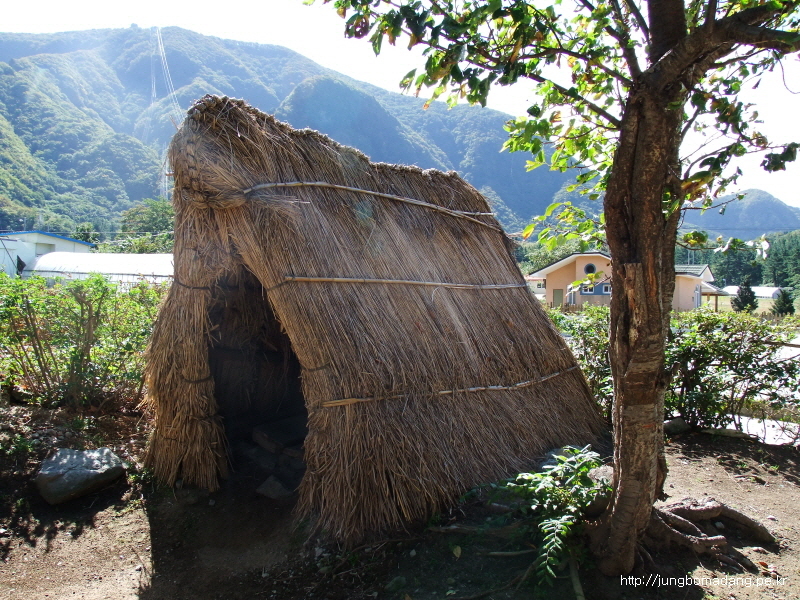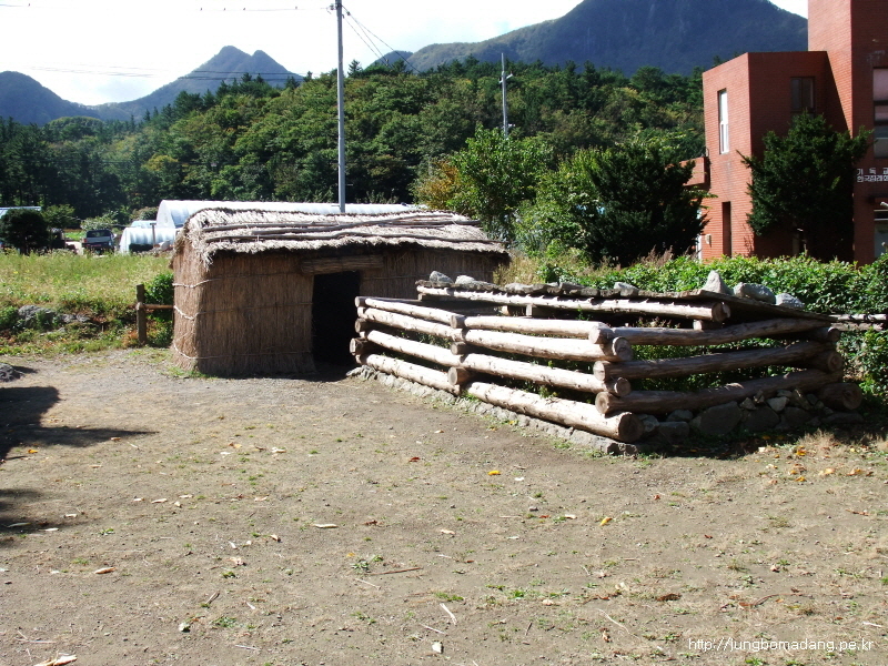 나무판자와 올리고 무거운 돌로 고정하던 그런 희안한 집..