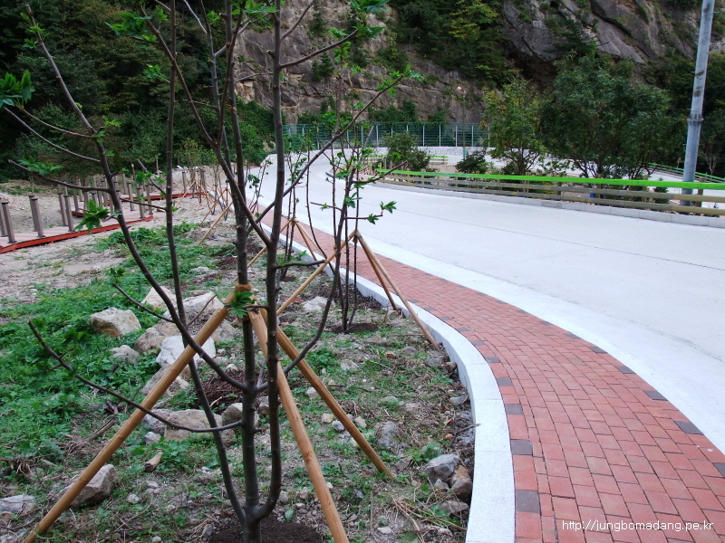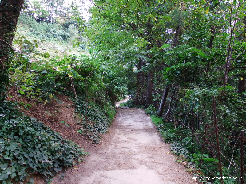 꼬불꼬불 내리막길... 현재 길 사이로 산책로 공사가 한창이다.