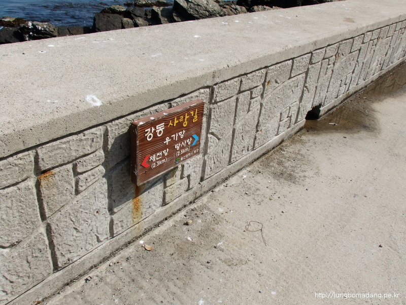 아~ 여긴 강동사랑길이네요? 이 코스에서는 강동사랑길중 해변따라 가는 길과, 산길로 우회하는 길 두가지가 있는 데, 저는 그냥 해변따라 가는 길로 택했습니다...