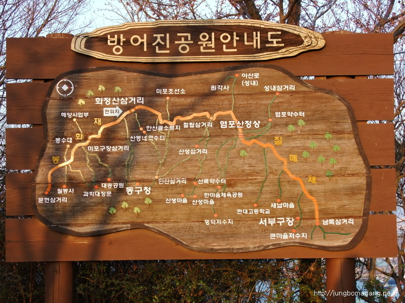길은 대체적으로 미포조선을 우측으로 끼고, 능선을 타고 간다고 생각하고 이동하시면 편합니다. ^^