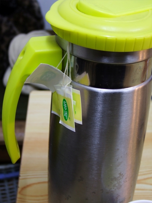 특이하게 생수대신 뜨거운 녹차를 만들어서 주네요...