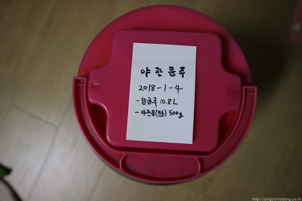 그리고 집에서 뒹굴구 있는 잘 씻어서 말려둔 담금주용 플라스틱통을 준비하구요.