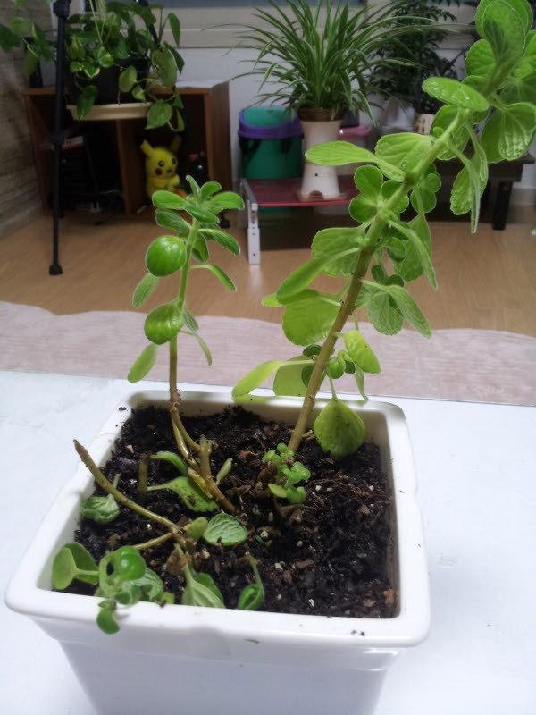 그러다 천정에 매달아 두려고 했던 분갈이한 스킨답서스가 줄이 무게를 지탱하지 못하고 추락해서 이렇게 아래 있던 애플민트를 덮치는 대참사가 ㅠㅠ 정말 풍성하고 이쁘게 잘자라던 녀석이었는데....