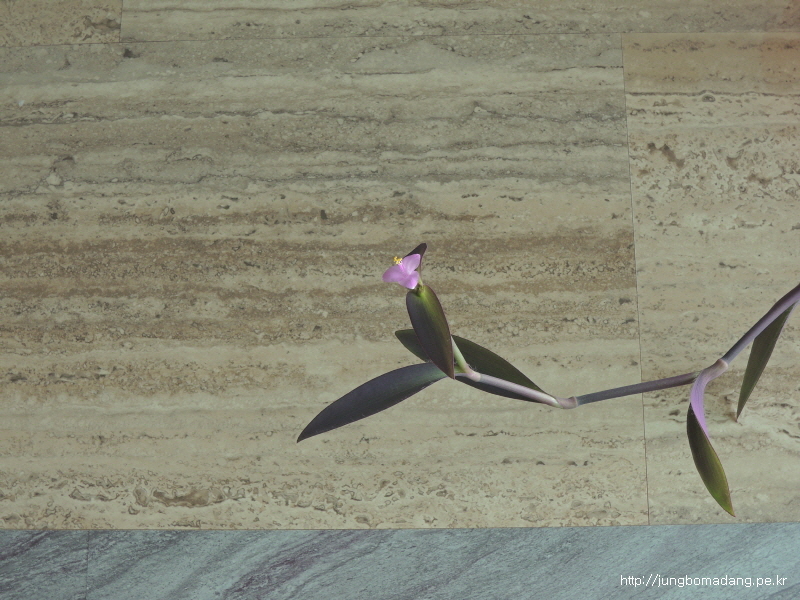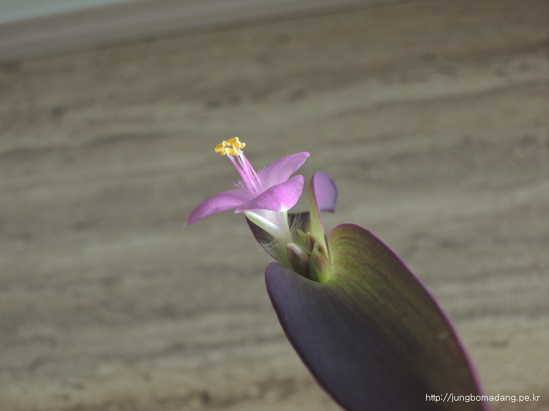 집에서 키우는 건 꽃이 안피우는 줄 알았는 데, 2미터 이상 줄기차게 자라더니, 줄기 끝에 이렇게 작고 앙징맞은 연보라빛 꽃을 피웠네요.