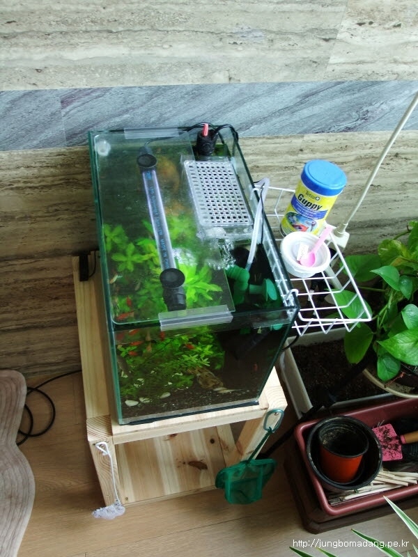 수족관이 빛이 넘 잘 드는거 같아 안쪽으로 옮기구요