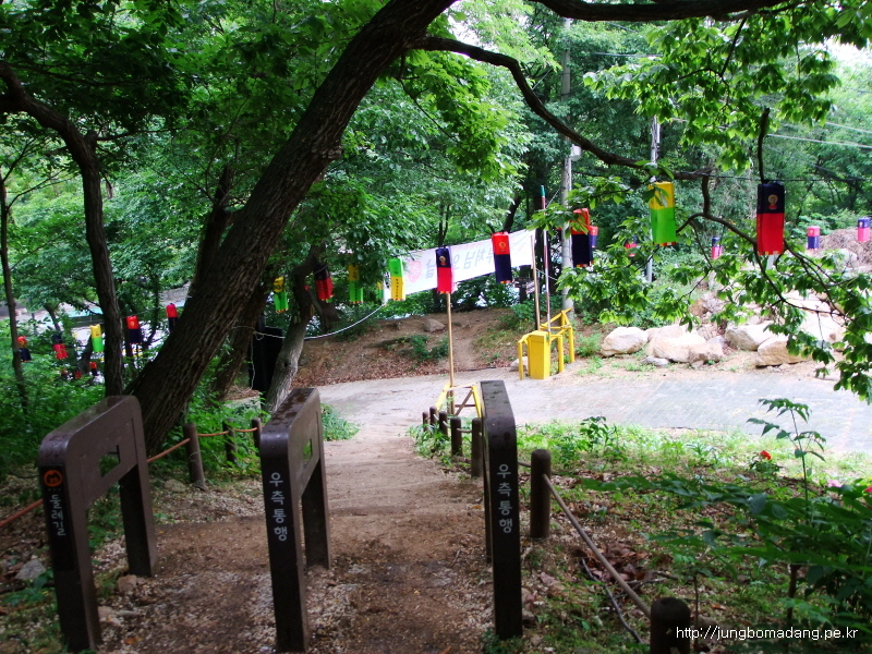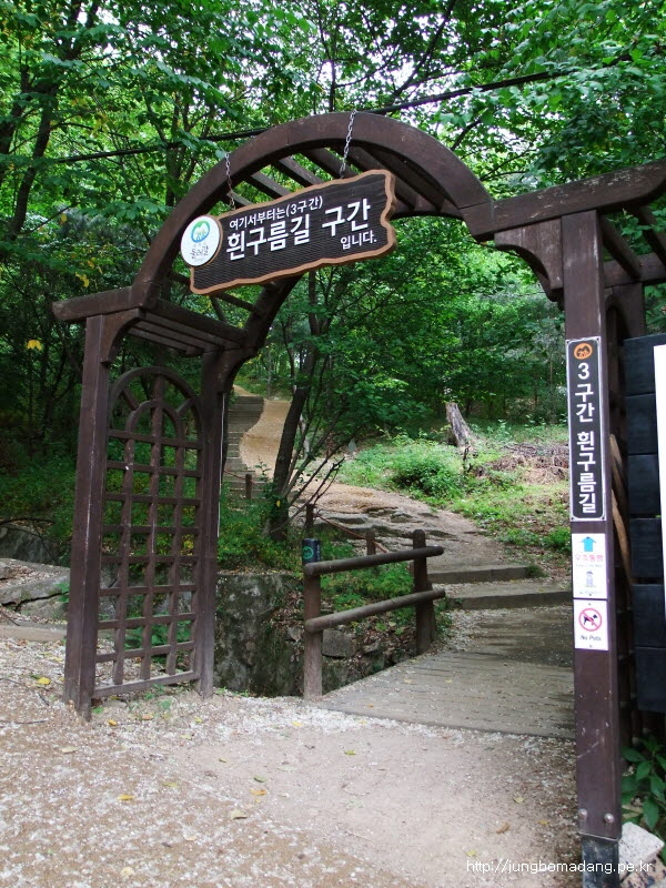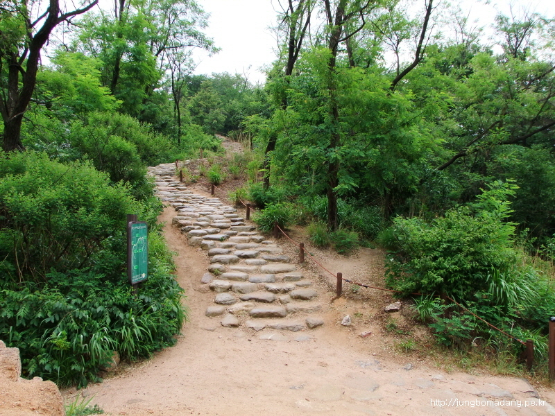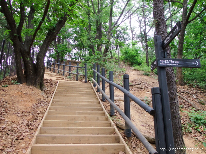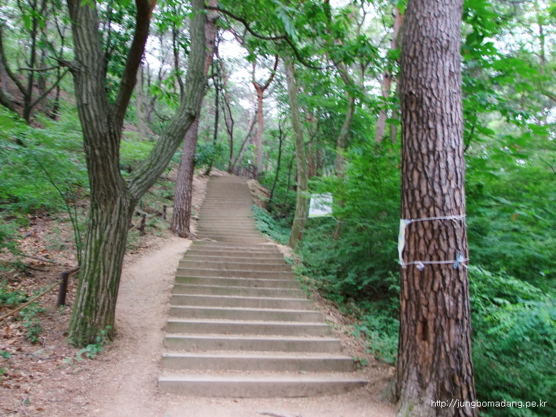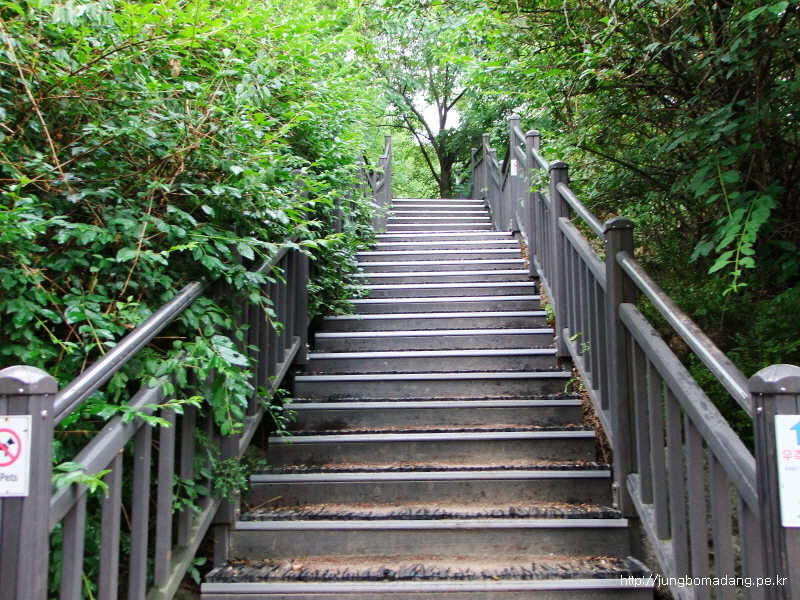 우측에 이런 계단길을 올라야합니다. 방금 흙길을 가게 되면 역방향으로 진행이 되더군요. 여기도 안내 표시가 좀 보강되어야 될 듯!! 여기서 몇바꾸를 돌았는지....