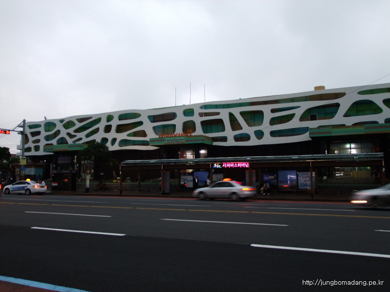여유가 있으니 밖에 나와서 길건너 편의점으로 달려갑니다. 터미널 사진도 찍고! 편의점에서 한라산에서, 야영장에서 먹을 거리를 사구요.
