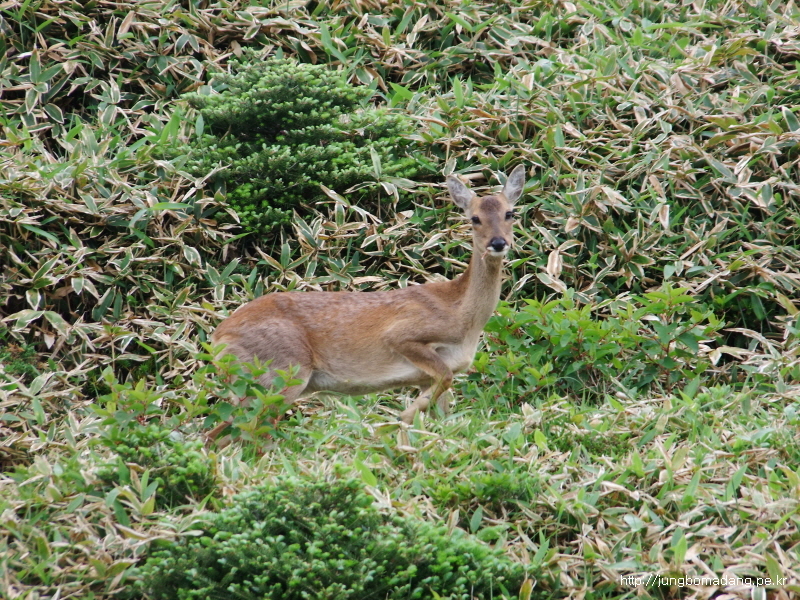 허거덕... 부시럭 소리에 반응하는 제게 딱걸린 노루의 모습. 근데 사진 좀 찍혀봤는 지 몇초정도 저와 눈싸움을 ㅠㅠ 귀여워.... (컹~ 컹~ 우는 소린 정말 비호감이지만 ㅠㅠ)