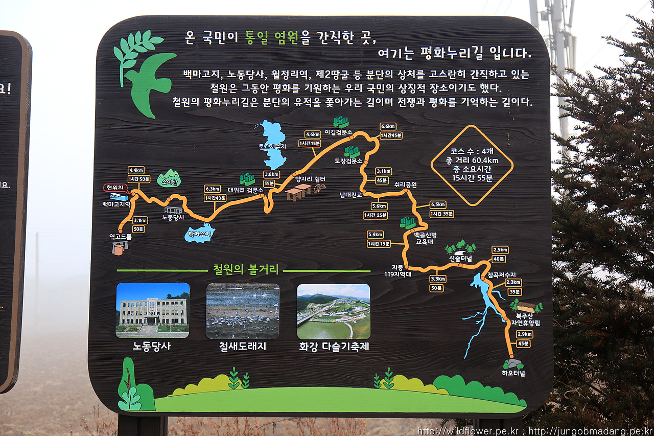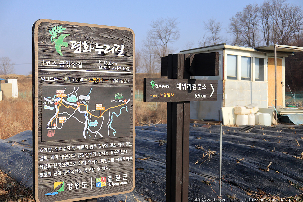 그렇게 보다 많은 두루미 모습을 간직한 DMZ을 가지 못하고 근처를 맴돌면 웬지 녀석들을 조금이라도 볼 수 있지 싶어서 평화누리길 13코스가 포함된 백마고지역-동송 여정을 이어갑니다.