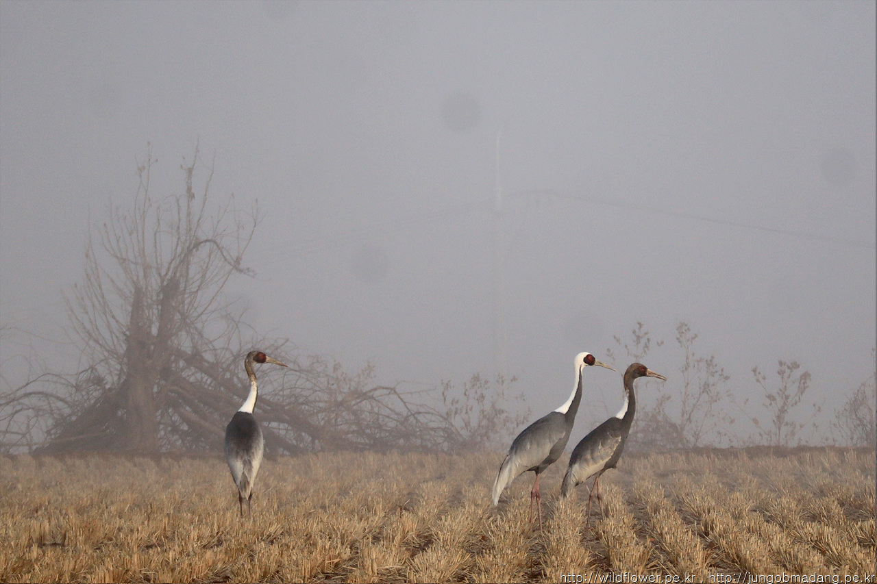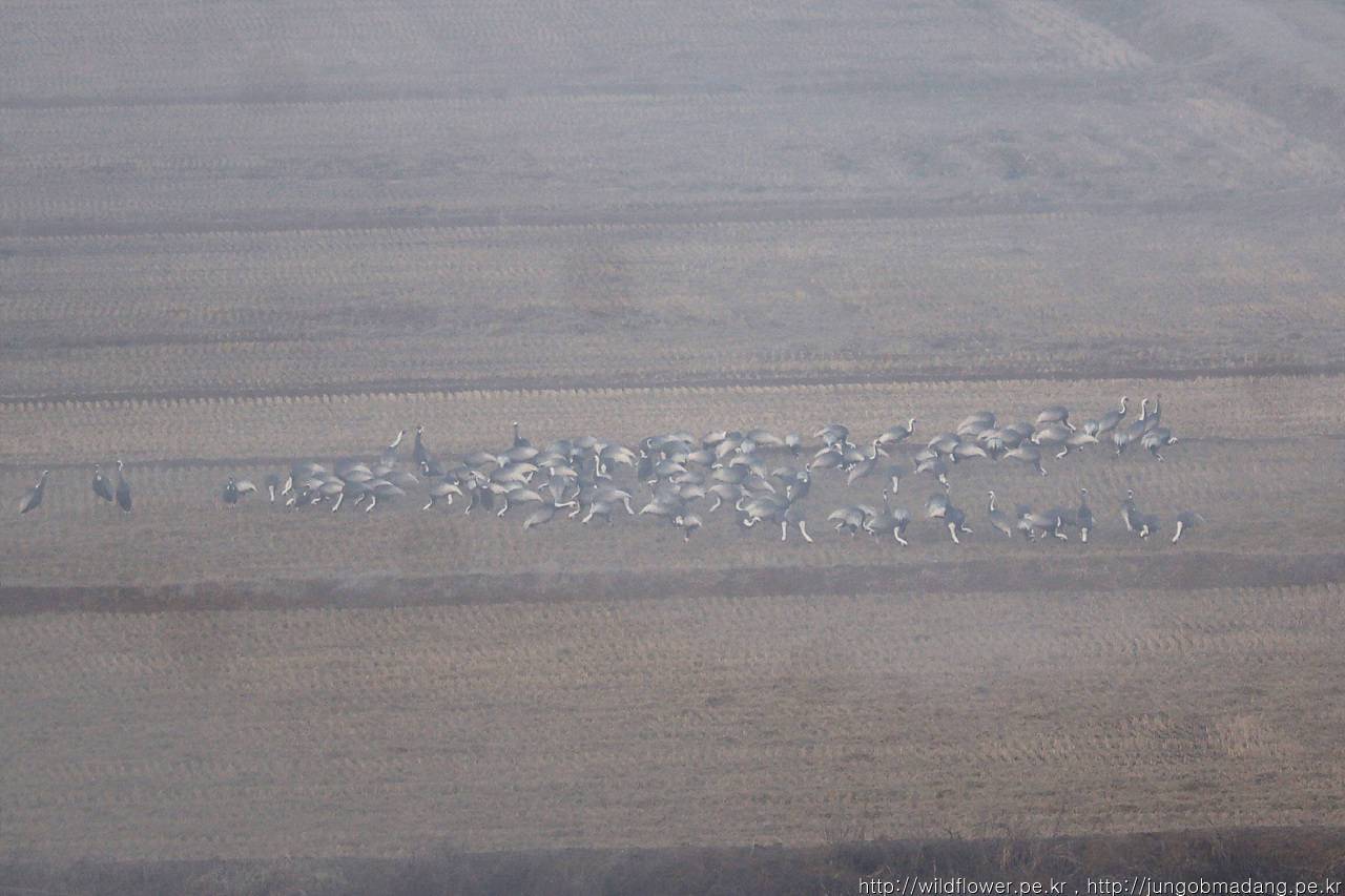 그렇게 백마고지역으로 되돌아 가는 길. 안개가 걷히기 시작하니 보이지 않던 재두루미 모습이 심심찮게 포착됩니다.