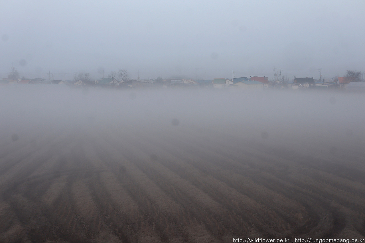 마을(대마리)이 안개 속에 갇혀서 분위기가 묘합니다.