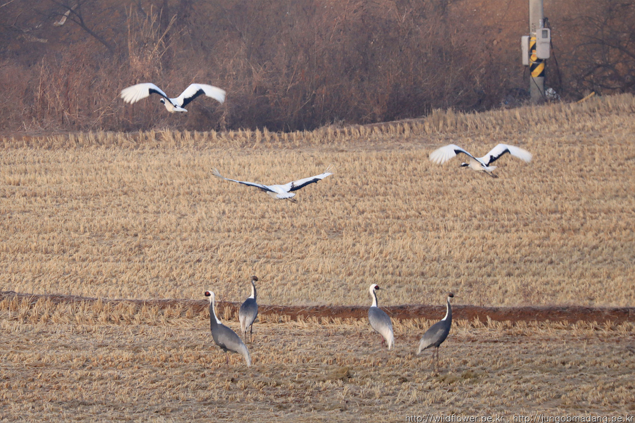그거 아시나요? 재두루미도 두루미와 마찬가지로 천연기념물입니다. 두루미는 가족 단위로 움직이고 재두루미는 그룹 생활도 많은 편입니다. 그래서 그런지 재두루미보다 두루미가 좀 더 예민해서 눈에 띄기 쉽지 않아서 잘 보이지 않고 상대적으로 재두루미는 두루미보다는 포착이 수월한 편입니다.