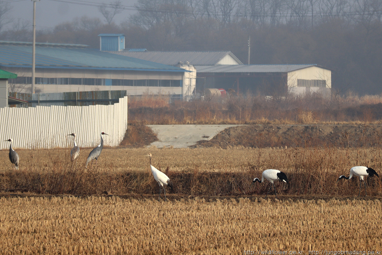 저 멀리 재두루미가 보입니다.