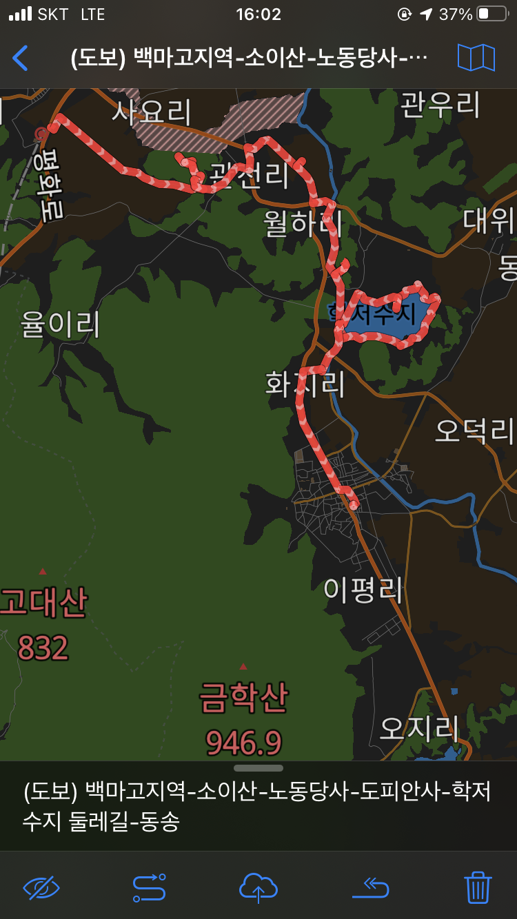 전에 쉬었던 정자를 보며 학저수지 둘레길(4.5km)을 돌아 보기로 합니다.